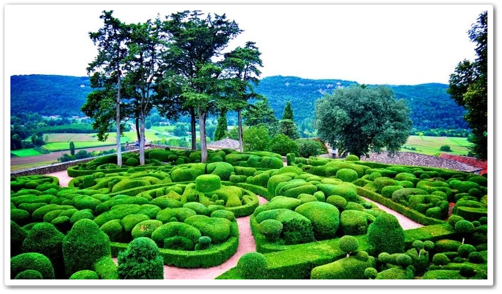 프랑스의 도르도 뉴 (Dordogne) 지역의 베작 (Vézac) 마을에는 세계에서 가장 아름다운 풍경 중 하나 인 마르퀴삭의 유명한 정원이 있습니다. 이 놀랄 만큼 조각적인 풍경은 17 세기에 지어진 샤또 드 마르퀴삭(Château de Marqueyssac) 주변을 둘러쌉니다. 거품이 많은 둥근 형태의 정원은 300 년 전에 처음 개발된 디자인을 유지하면서 조심스럽게 다듬어졌습니다. 정원은 지구 상에서 가장 놀라운 장소의 목록이라고 할 수 있습니다.